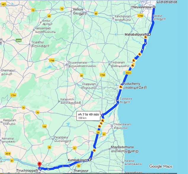 Night stay: Trichy (Night 6).